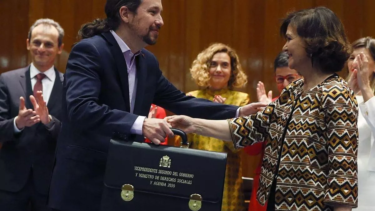 n n n El vicepresidente segundo del Gobierno y ministro de Derechos Sociales y Agenda 2030, Pablo Iglesias, se comprometió ayer a trabajar para que "la próxima década en España sea la del constitucionalismo democrático", lo que "significa garantizar, ampliar y blindar los derechos sociales". Iglesias tomó posesión de la cartera, entre fuertes aplausos y gritos de "sí se puede", de manos de la vicepresidenta del Gobierno, Carmen Calvo, quien le dijoo: "Haremos un tándem importante de trabajo porque en ti va a recaer una parte verdaderamente preciada de las políticas de un gobierno progresista como somos".