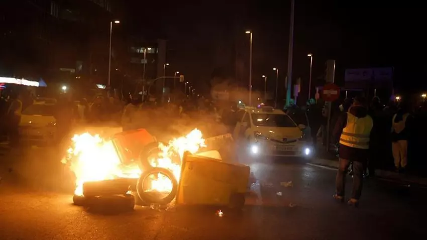 Las protestas de los taxistas cortan el tráfico en la M-40 en ambos sentidos, a la altura de IFEMA