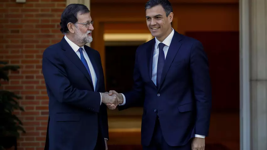 El jefe del Gobierno, Mariano Rajoy, y el líder del PSOE, Pedro Sánchez, pactaron ayer una respuesta proporcional ante un eventual desafío del nuevo presidente catalán, Quim Torra, que supondría reactivar el 155 si se crean "estructuras políticas paralelas" y se quiebra el orden constitucional. Así lo expresaron el Gobierno y el PSOE en un comunicado conjunto tras la reunión que mantuvieron Rajoy y Sánchez en el Palacio de la Moncloa, en la que el Gobierno y el PSOE acordaron que la "vigilancia" en el cumplimiento de la legalidad se haga extensiva a las finanzas de la Generalitat, para garantizar que el dinero público no se destine al "procés".