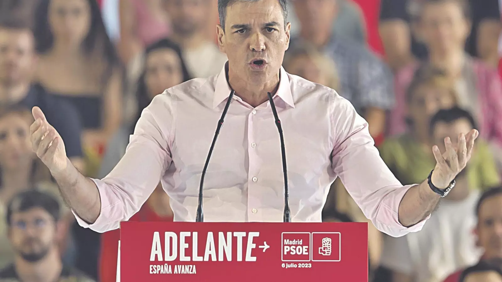 El presidente del Gobierno y secretario general socialista, Pedro Sánchez, pidió la “confianza” de los ciudadanos para “avanzar” tras el 23J, incluso a aquellos que no optaron nunca por el PSOE, pero a los que “no les gusta ni un pelo el tráiler de la película tenebrosa de Feijóo con Abascal”.