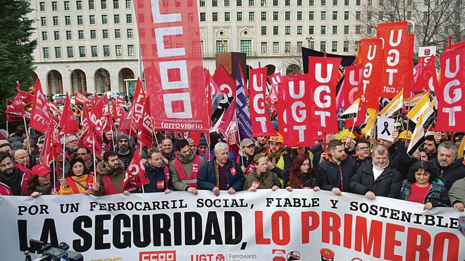 Los sindicatos presentes en Renfe se concentraron ayer ante la sede del Ministerio de Transportes y Movilidad Sostenible en Madrid, señalando que los recientes accidentes de tren “no pueden ser considerados como hechos aislados, sino como un síntoma más de la enfermedad crónica que sufre el ferrocarril”. El sindicato de maquinistas Semaf, CCOO, UGT, CGT, Sindicato Ferroviario y Sindicato de Circulación Ferroviaria, todos ellos en los comités de empresa de Renfe o Adif, así como otras organizaciones como Alferro o USO, presentes en otras empresas que prestan servicios en el sector ferroviario, comenzaron la concentración a las 12.00 horas.