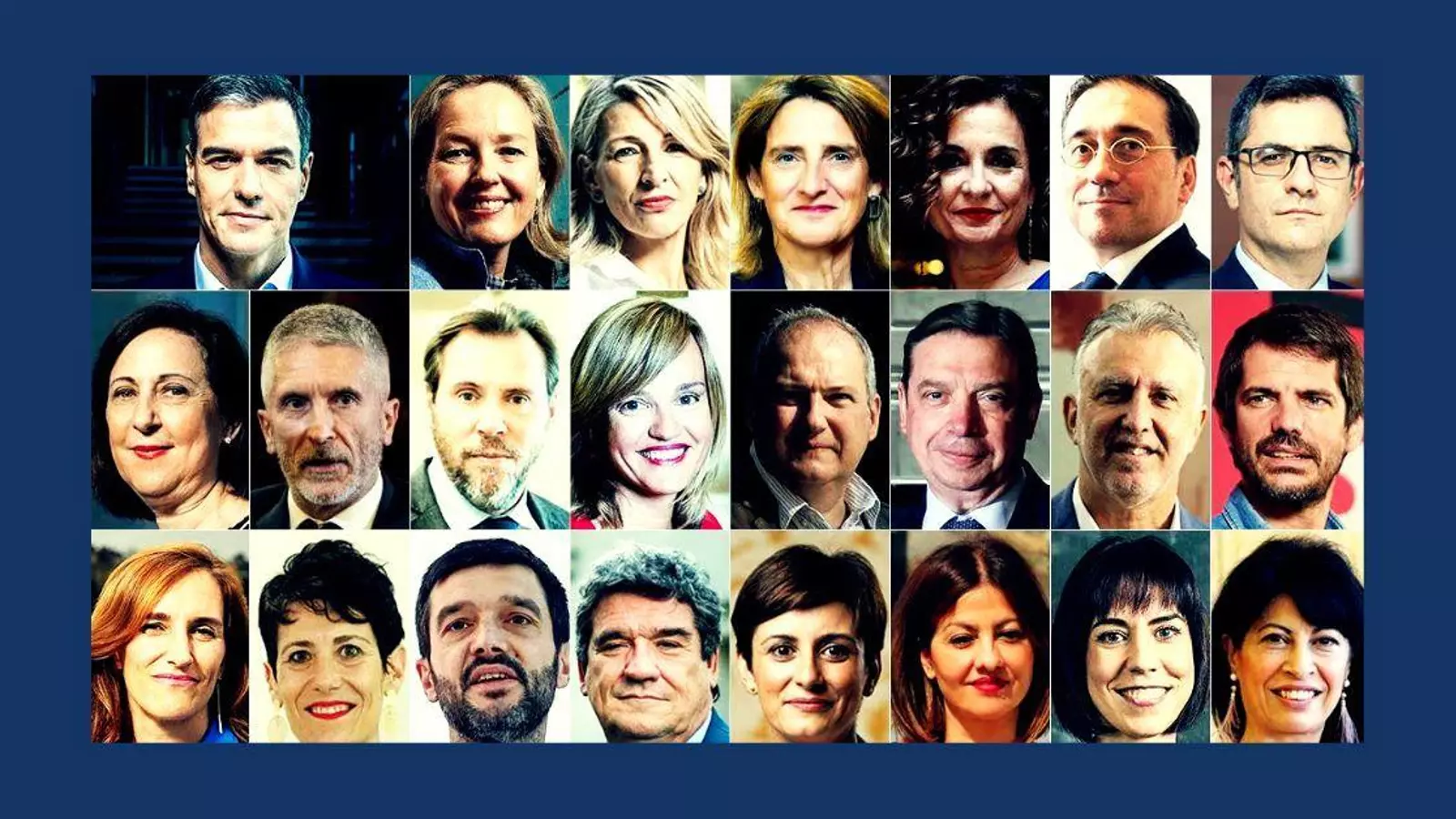 A lo largo de la mañana del lunes, se filtraron los nombres de los ministros del nuevo Gobierno de España. Muchos nombres repiten puesto o cambian de cartera respecto a la anterior configuración del Ejecutivo. También hay nuevos nombramientos, algunos más sorprendentes que otros, unificación de ministerios y creación de otros nuevos.