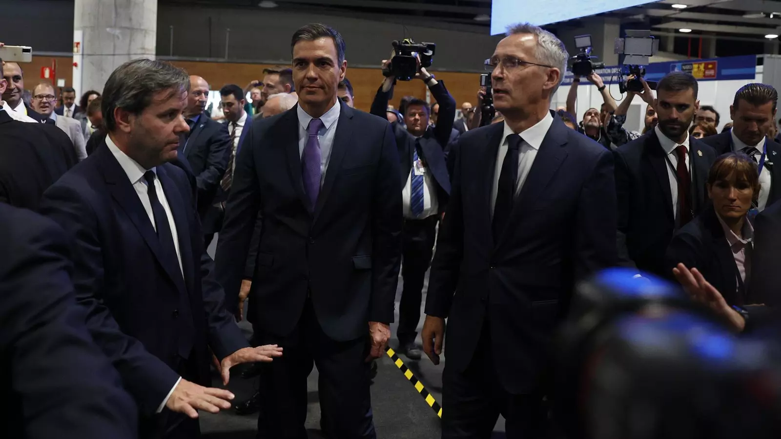 Salen desde un centro de acreditaciones instalado en Mar de Cristal, en Hortaleza, donde los periodistas antes deben haber pasado varios controles de seguridad por parte de la Policía Nacional. Junto a su acreditación, reciben como obsequio de la OTAN una 'tote bag', un cuaderno y un bolígrafo.