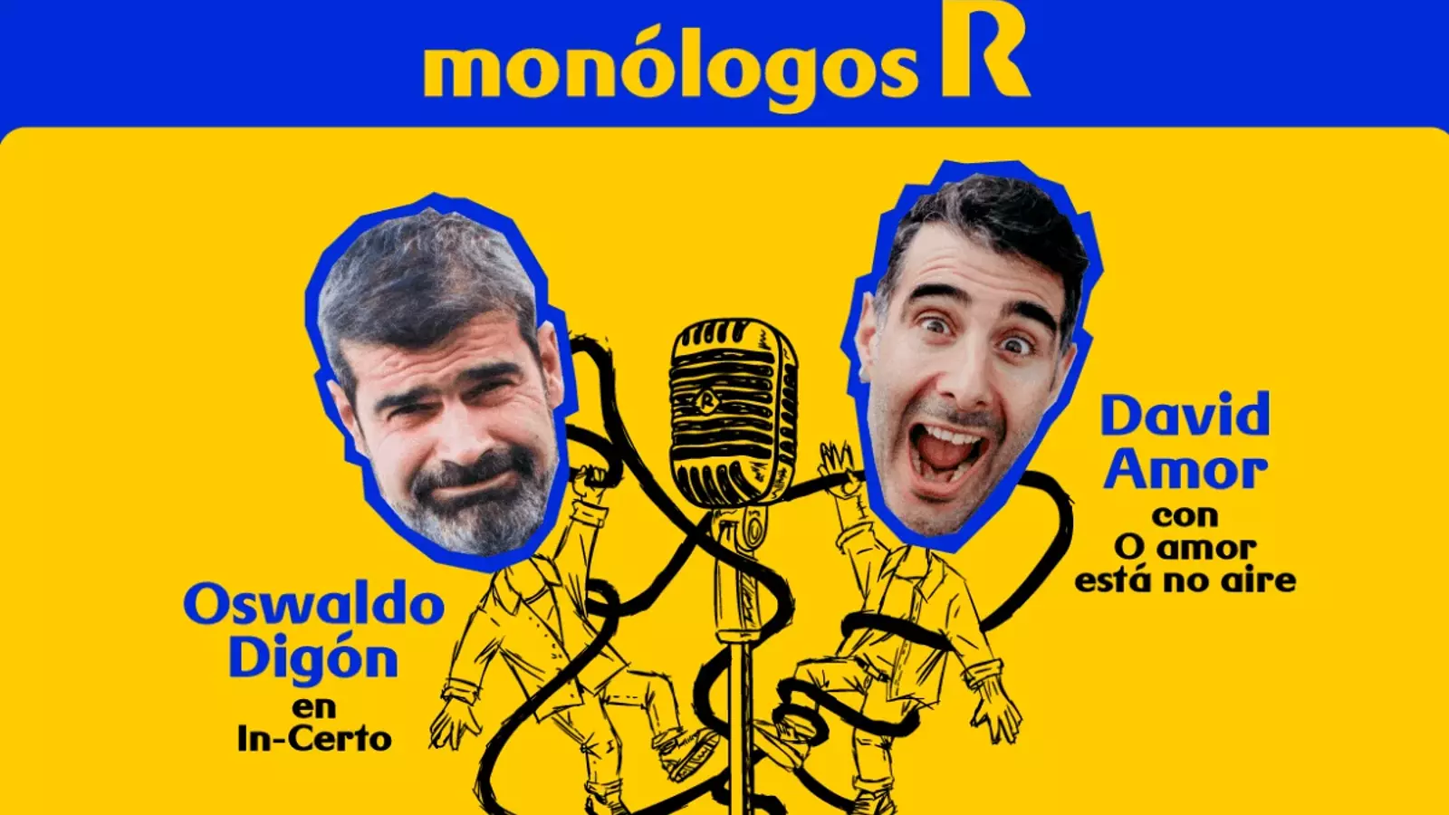 David Amor y Oswaldo Digón presenta sus respectivos espectáculos dentro de la iniciativa monólogos R. David Amor hablará en su monólogo 'O amor está no aire' de sus inquietudes y de una de sus últimas pasiones: los aeropuertos. En IN-CERTO Oswaldo Digón mezcla stand-up e improvisación teatral. Abordará temas como la tecnología, la ansiedad, las preocupaciones de nuestro día a día… y conversará con el público sobre las pequeñas y grandes cosas que afrontamos en un día cualquiera.