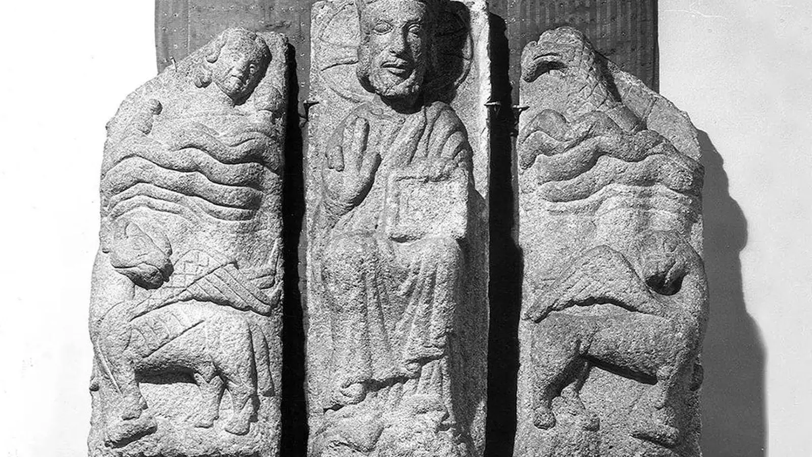Se trata de un Cristo en Majestad y una talla con los símbolos de los evangelistas San Lucas y San Xoán, que formaban parte del tímpano de la fachada principal del monasterio benedictino, vinculado al taller del Mestre Mateo. Las esculturas fueron sustraídas en 1957, cuando el monasterio ya estaba declarado Monumento Nacional, lo que convertía la retirada en ilegal. La investigación del historiador Francisco Prado-Vilar fue clave para documentar la fecha del expolio y sustentar la reclamación con base jurídica.