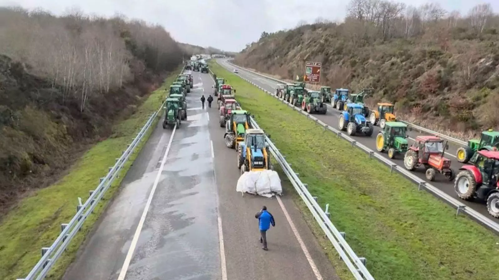 Los ganaderos y agricultores de Ourense han vuelto a bloquear la autovía A-52 en ambos sentidos a su paso por Xinzo de Limia, en el kilómetro 190,5, para reclamar una reunión con altos cargos del Ministerio de Agricultura, Pesca y Alimentación y expresar su rechazo al acuerdo europeo con Mercosur.
