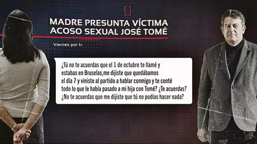 La mujer, trabajadora del partido, fue la persona que se entrevistó con Besteiro el 7 de octubre, fecha que desveló ayer Código 10, que mostró mensajes intercambiados entre la mujer y el secretario general. “¿Tú no te acuerdas que el 1 de octubre te llamé y estabas en Bruselas, me dijiste que quedábamos el día 7 y viniste al partido a hablar conmigo y te conté todo lo que le había pasado a mi hija con Tomé? ¿Te acuerdas? ¿No te acuerdas que me dijiste que tú no podías hacer nada?”, cuenta la madre en un fotomontaje con el que el programa promocionó ayer en redes sociales la emisión de la noche.