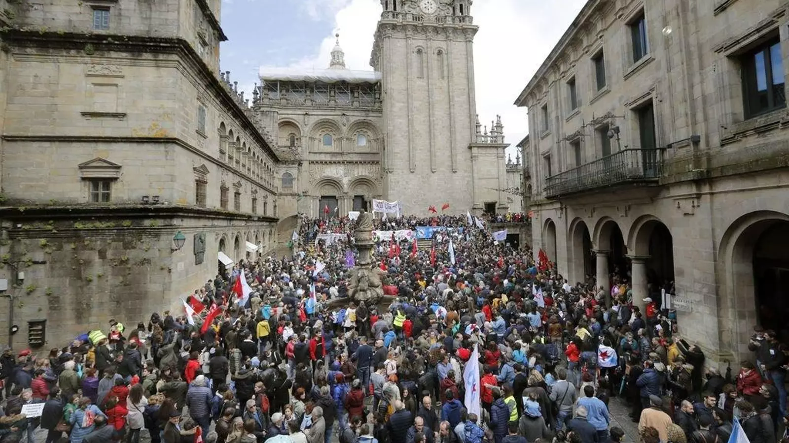Precisamente, Santiago acolleu unha das mobilizacións principais do día, que estivo apoiada por numerosos representantes do panorama social e político, como a portavoz nacional do BNG, Ana Pontón, o secretario xeral do PSdeG, Gonzalo Caballero, Lidia Senra de En Marea ou Antón Sánchez de Anova, entre outros. A comitiva saíu da Alameda pasadas as 12.00 horas ao berro de "Na Galiza, en galego", tras unha pancarta na que se lía "¡Máis que nunca, Queremos galego!`. Sobre a mesma hora, a imaxe repetíase na Coruña, Ferrol, Carballo, Lugo, Burela, Monforte, Ourense, Pontevedra, Vigo, A Estrada, Cangas e Lalín.
