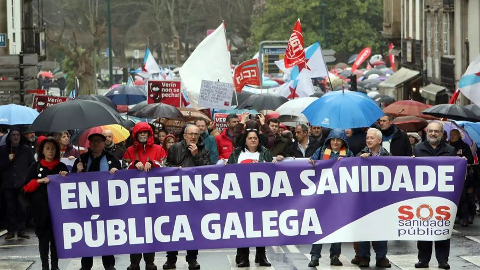 El portavoz de la plataforma asociativa SOS Sanidad Pública, Manuel Martín, afirmó a un grupo de periodistas al inicio de la manifestación que la afluencia de miles de personas "pese al mal tiempo" muestra el "amplio respaldo" de las protestas para "denunciar la situación de gravedad de la sanidad pública en Galicia".