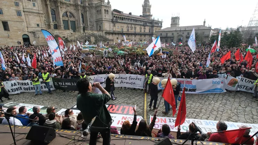 El manifiesto, leído por miembros de la organización tras la actuación de regueifeiras y Sés, ha abogado por modelos industriales "compatibles" con la riqueza de Galicia y "no proyectos extractivistas", que ejemplifican en Altri o la mina de Touro-O Pino, que también ha copado la atención de múltiples manifestantes.