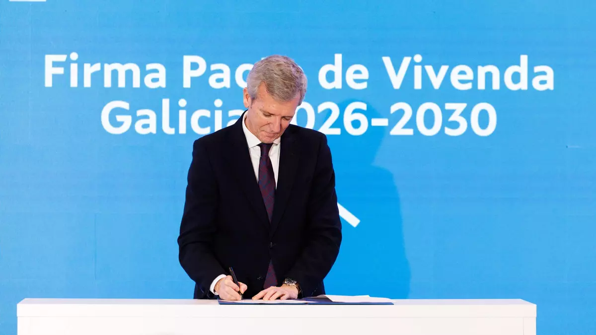 El presidente de la Xunta, Alfonso Rueda, destacó el “consenso” con el que ayer se firmó en Pontevedra el II Pacto de Vivienda de Galicia, con el que el Gobierno autonómico prevé invertir casi 2.000 millones de euros entre 2026 y 2030 para reforzar las políticas públicas en este ámbito. El objetivo, señaló, consiste en “alcanzar las 10.000 viviendas públicas en el año 2030”.