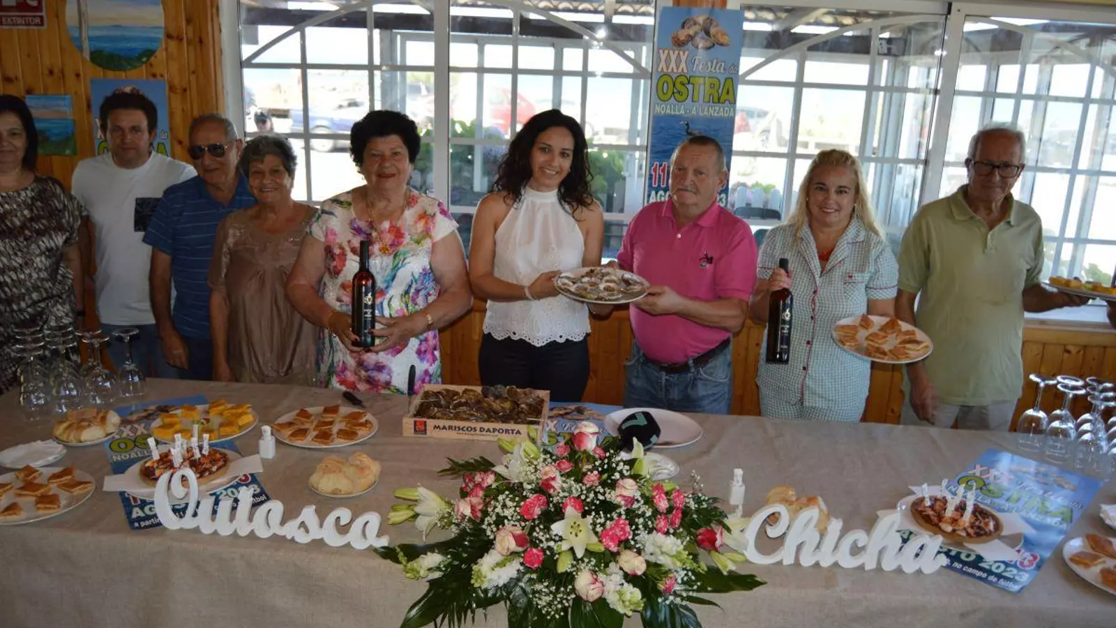 Este pasado fin de semana las concejalas del Concello de Sanxenxo de Cultura y Eventos, Elena Torres, y de Educación, Natividad Parada, presentaron la cita gastronómica junto al presidente de la Comisión de Festas Virxe do Carme de Noalla, Roberto Garrido y varios miembros del colectivo en el conocido kiosco de Chicha de A Lanzada.