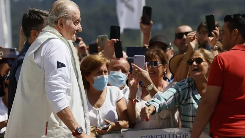 El padre de Felipe VI está disfrutando este fin de semana de una de sus mayores pasiones, la vela, y en su estancia en Galicia se alojó en casa del regatista Pedro Campos, quien lo acogió en su chalet de la parroquia de Nanín y ayer por la mañana le trasladó en su automóvil al Club Náutico. A las 13:34 salió bajado al Bribón, sin bastón, y fue recibido por la tripulación. Luego se quitó Juan Carlos I la gorra que llevaba para una foto con ellos. Después de esta instantánea, se montó en la barca auxiliar.