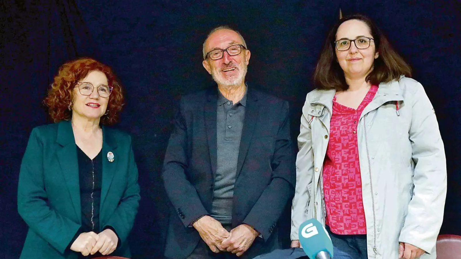 Manuel Martín, portavoz de SOS Sanidade, ayer con Montse Prado (BNG) y Ana Lestón (CIG).