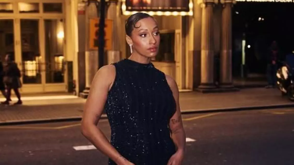 El vestido, negro con pedrería, de talle largo y ajustado que realzaba su espléndido embarazo, fue de Rosa Clará. Las joyas que lució eran de Mumit, las sandalias de Martinelli y el maquillaje corrió a cargo de Ismael Bachiller con productos de Dior.