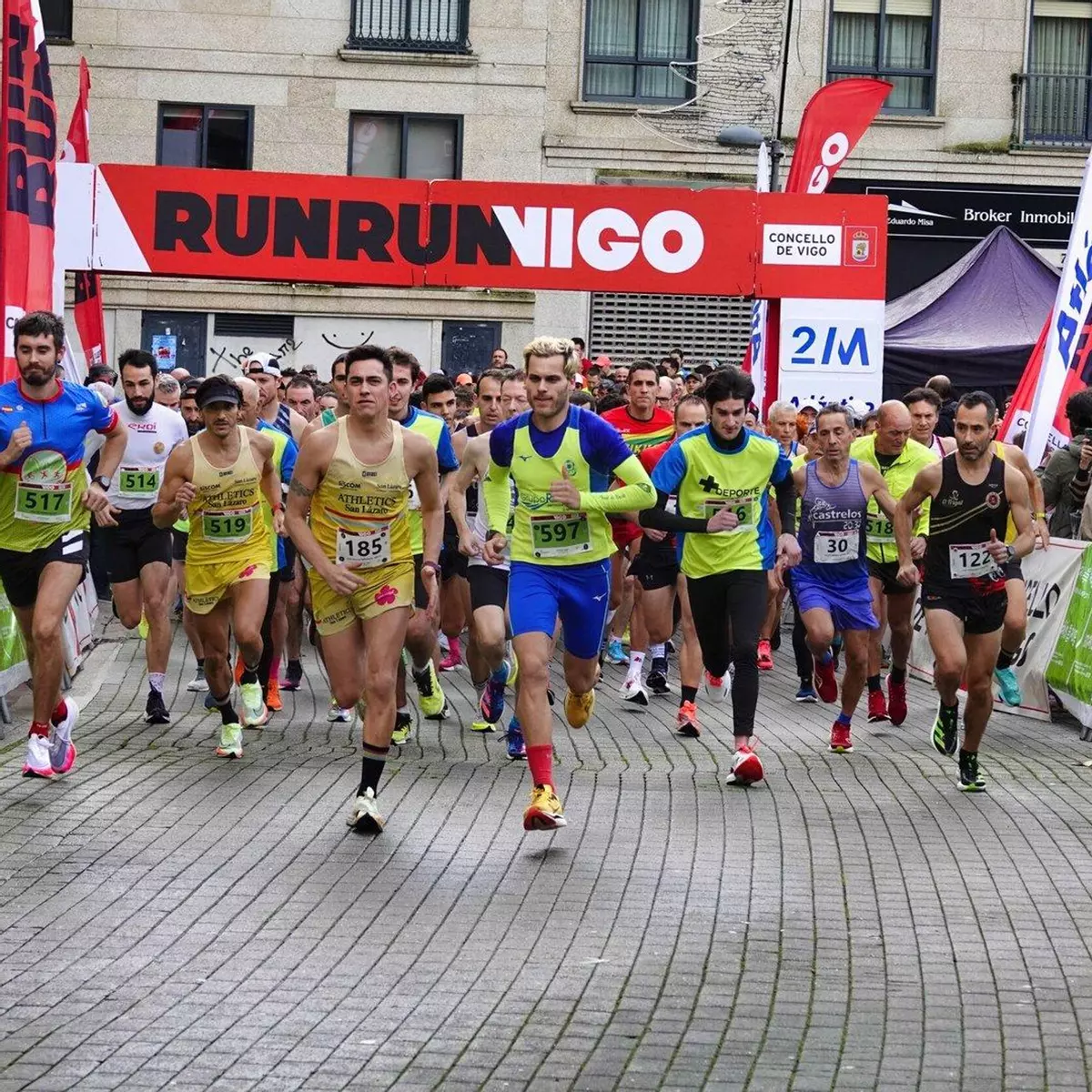 Corredores en la Vigo+11 en Coia preparados para la salida.
