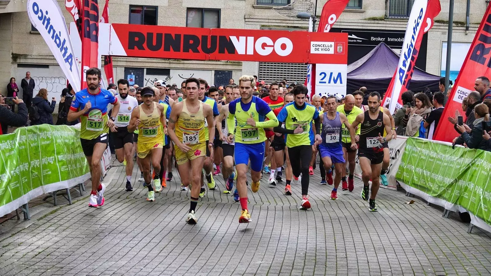 Susto en la salida de alevines en la Vigo+11 en Coia por el disparo de inicio.