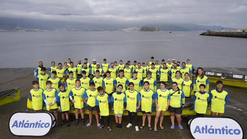 Pada a pada, remata a sesión e as embarcacións toman a dirección cara terra para dar o relevo ós máis pequenos. Primeiro, toda a fotografía de familia con todos os participantes no adestramento colectivo de +Deporte Atlántico e o Círculo Cultural e Deportivo de Cesantes. Unhas sesenta persoas acudiron á sesión, que tivo algunhas baixas por motivos laborais e persoais. Algo habitual e, como todo deporte amateur, un contratempo ó que adaptarse para remeiros que tiran do seu tempo libre para poder adicarse a unha disciplina, que tamén é unha paixón.