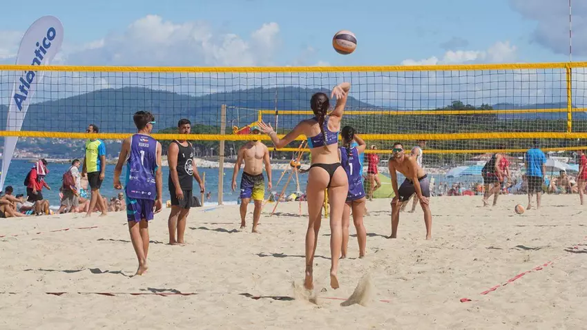 Los tres elementos (arena, mar y aire) se juntaron para hacer que la cita deportiva fuese perfecta. El sol apareció pero no apretó, lo que agradecieron los 35 equipos que componían el cuadro. Camisetas de todos los colores, desde las de clubes ya federados, otros con la indumentaria del Vigo Voley Praia, coorganizador del evento, o la tradicional camiseta fluorescente que se entrega por la inscripción. El mar de fondo, con curiosos que disfrutaban de una jornada playera acercándose a observar las jugadas que se estaban realizando en las seis pistas instaladas, donde no pararon de jugarse partidos. Uno tras otro. Y el aire, justo pero necesario. No mucho, para que la pelota modificase su trayecto, pero con una ligera brisa que refrescaba al competidor.