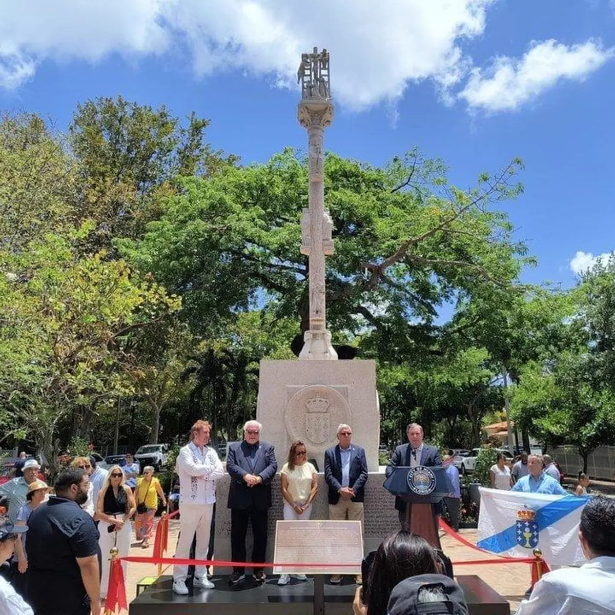 Dos años se tardó en conseguir los permisos necesarios para su colocación. Fue clave la intervención de gallegos radicados en la ciudad del sol, como Carlos Vasallo, Rodolfo Hinrichs, José Manuel Losada, el cubano de origen gallego Alejandro Esperon y el arquitecto Lazaro Blanco