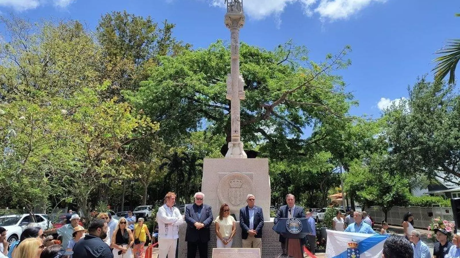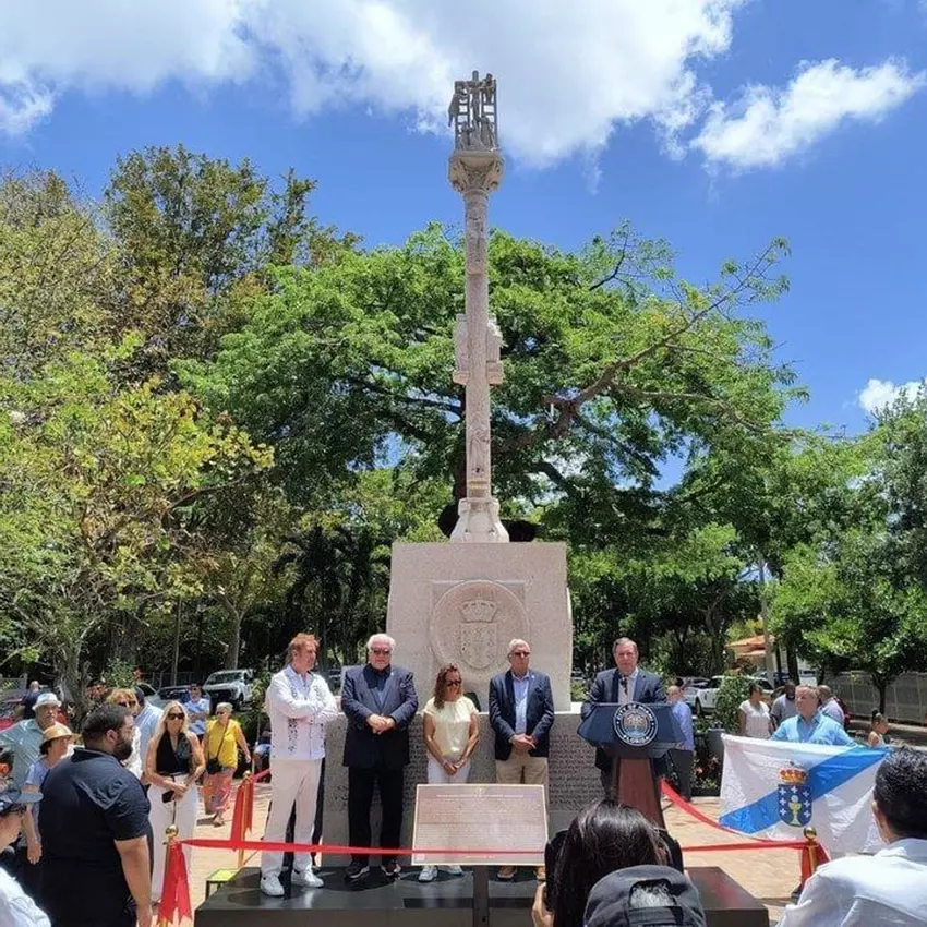 Desde este sábado el cruceiro más alto del mundo está Estados Unidos, en concreto en la Plaza de Galicia de Miami. Este hito se pudo lograr gracias al empeño de la cofradía Galegos Forever. Con sus 8 metros y 79 centímetros de altura, el cruceiro supera al de Mondariz, que mide 8,48 metros.