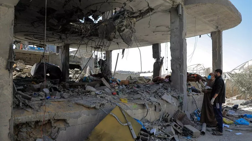 Gente inspecciona un edificio destruido en Gaza. // E.P.