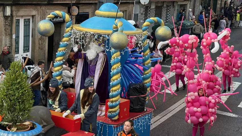 La Rondalla del Centro Cultural de Santiago de Parada y los patinadores del Club Patinaje Nigrán encabezaron el desfile, seguidos por Melchor, Gaspar y Baltasar, acompañados de sus pajes y más de 40 animadores que llenaron las calles de palomas de la paz, osos panda, camellos, flamingos y barcos pesqueros, creando un mundo mágico y original.