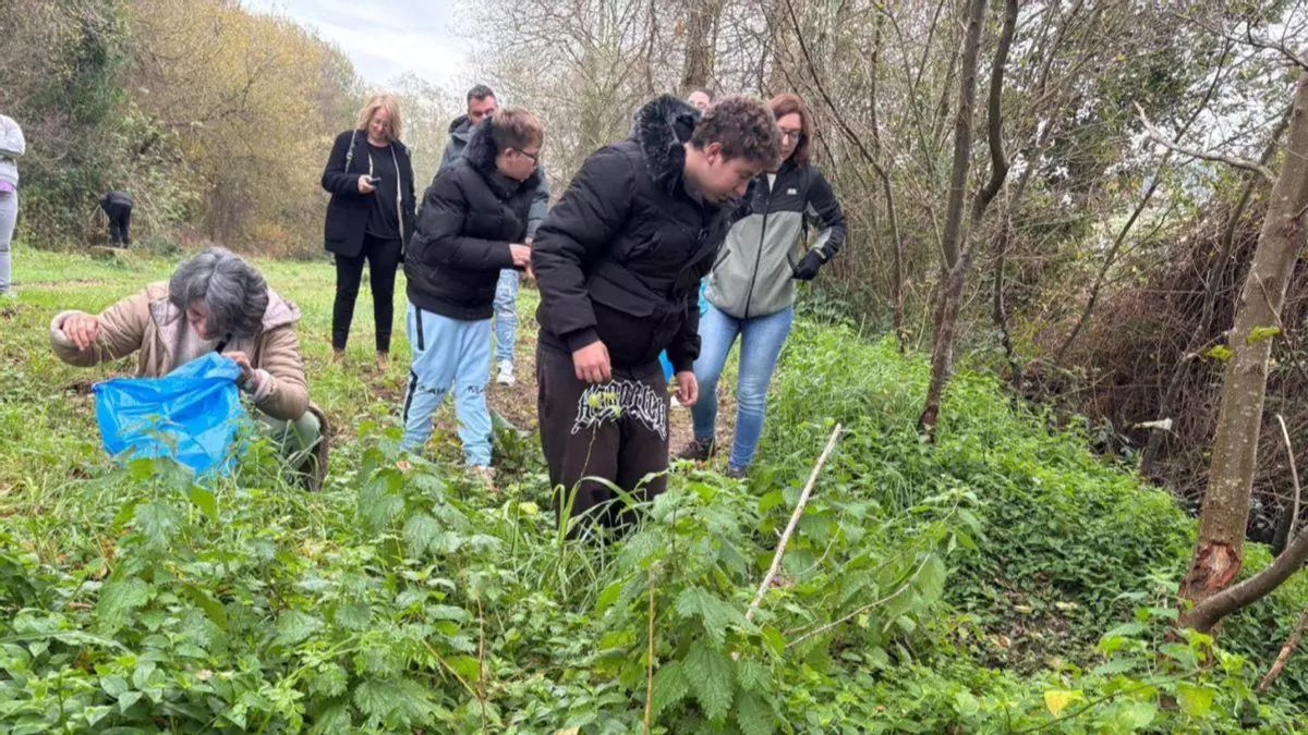 La asociación ambientalista Amabul y alumnos del CEE de Panxón iniciaron los trabajos para eliminar la tradescantia