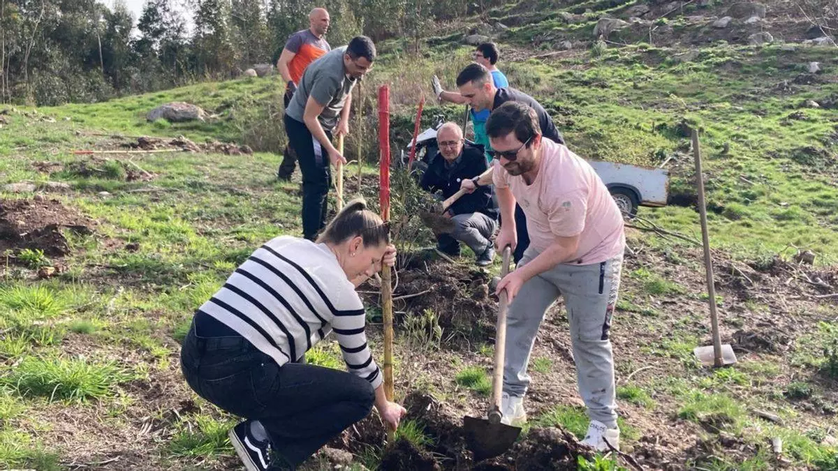 El Ayuntamiento de Nigrán retomó esta semana las plantaciones comunitarias en el parque forestal “Os Matos-Río Táboas” a través del CEE Juan María y al CEIP de la Cruz (Camos) con el doble objetivo de reforestar la zona y, al mismo tiempo, servir de actividad de concienciación y educativa. Una docena de usuarios del centro ocupacional plantaron ya 60 olivos en media hectárea correspondiente a la parroquia de Camos, mientras que el alumnado de 2º a 6º de Primaria del CEIP de la Cruz (Camos) reforestaron otra parcela de 1 hectárea con 200 cerezos y castaños.