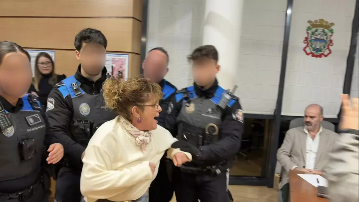 La sesión se celebró con fuertes medidas de seguridad, con presencia de Policía Local y Guardia Civil. Estela Santomé se negó a abandonar la sala por voluntad propia y tuvo que ser acompañada por cuatro agentes