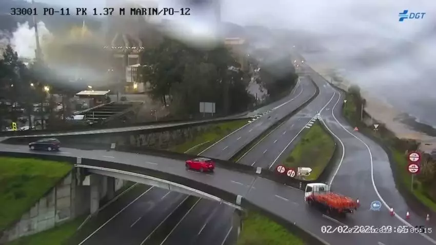 La autovía PO-11, que conecta Marín con Pontevedra, ha tenido que ser cortada completamente en ambos sentidos este lunes después de que el mar inundara sus cuatro carriles a causa del temporal que afecta a Galicia.