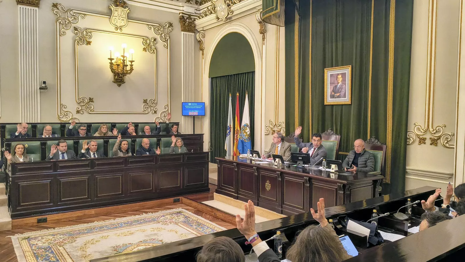 El pleno de la Diputación aprobó dos mociones presentadas por el PP, centradas, por un lado, en la solicitud al Gobierno de España para que flexibilice y adapte el reglamento europeo de control de la pesca a la realidad operativa de la flota litoral y artesanal de Galicia; y, por otro, en apoyo y defensa del sector agroganadero ante el acuerdo comercial entre Europa y Mercosur. Ambas propuestas salieron adelante con el voto favorable de los diputados populares (14) y la abstención del PSOE y del BNG (12).