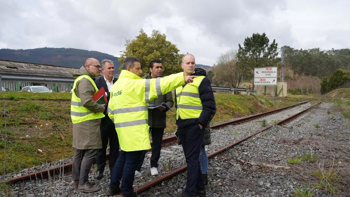 El presidente de la Diputación y responsables de ADIF inspeccionaron el tramo de la vía ferroviaria para planificar la senda que unirá a pie Soutomaior, Vilaboa y la ciudad del Lérez