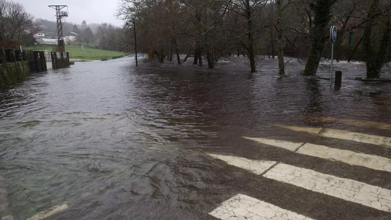 El río Verdugo también anegó por completo zonas recreativas en A Lama, donde se aproxima a las viviendas. Este afluente alcanzó a media tarde de ayer los 163 metros cúbicos por segundo.