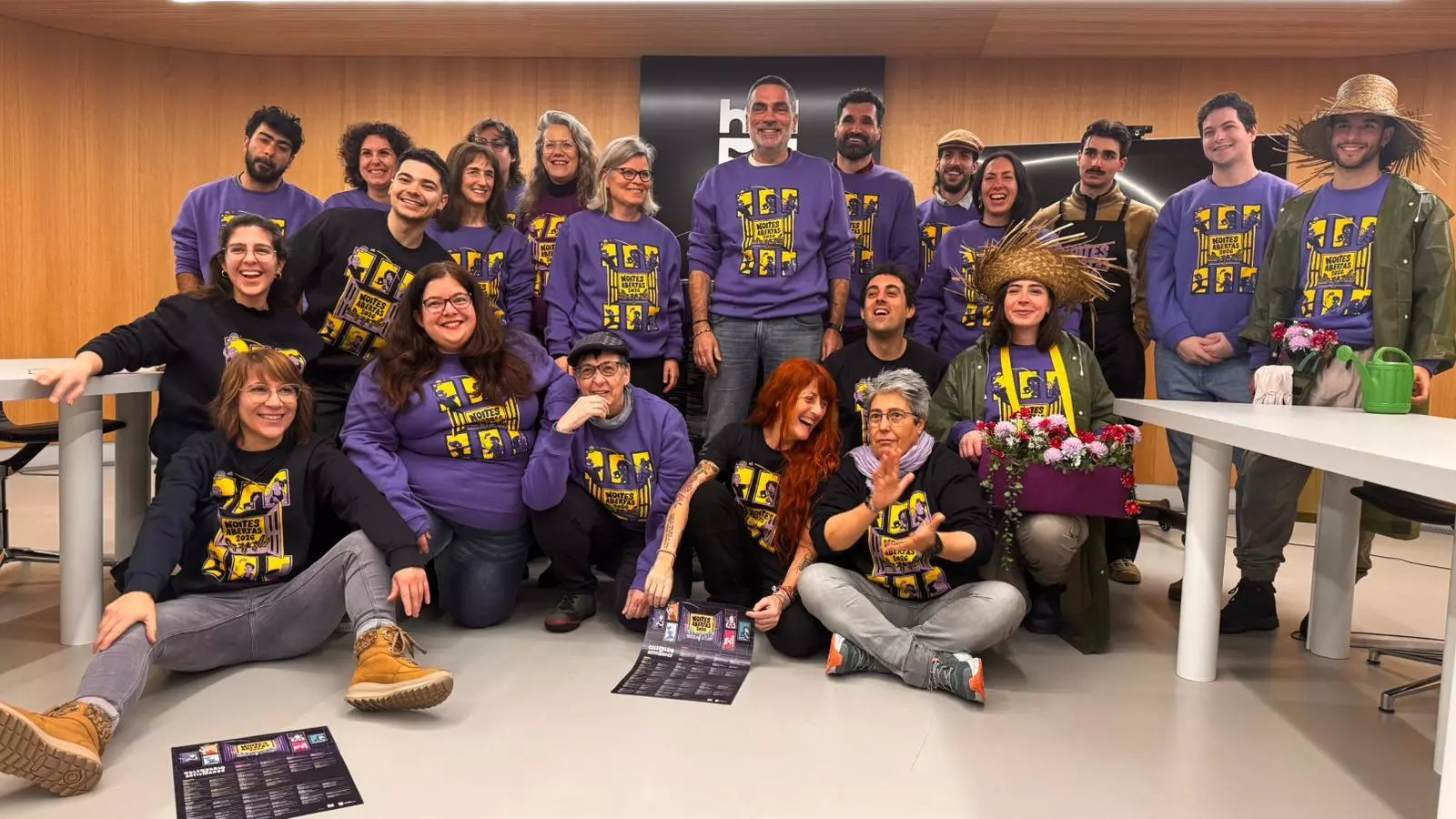 Noites Abertas cuenta con 118 monitores, una promotora de igualdad, cinco controladores, una coordinadora y un director de actividades, que se encargan de que todo funcione. Además, existen profesionales a disposición de las personas con discapacidad que lo precisen.