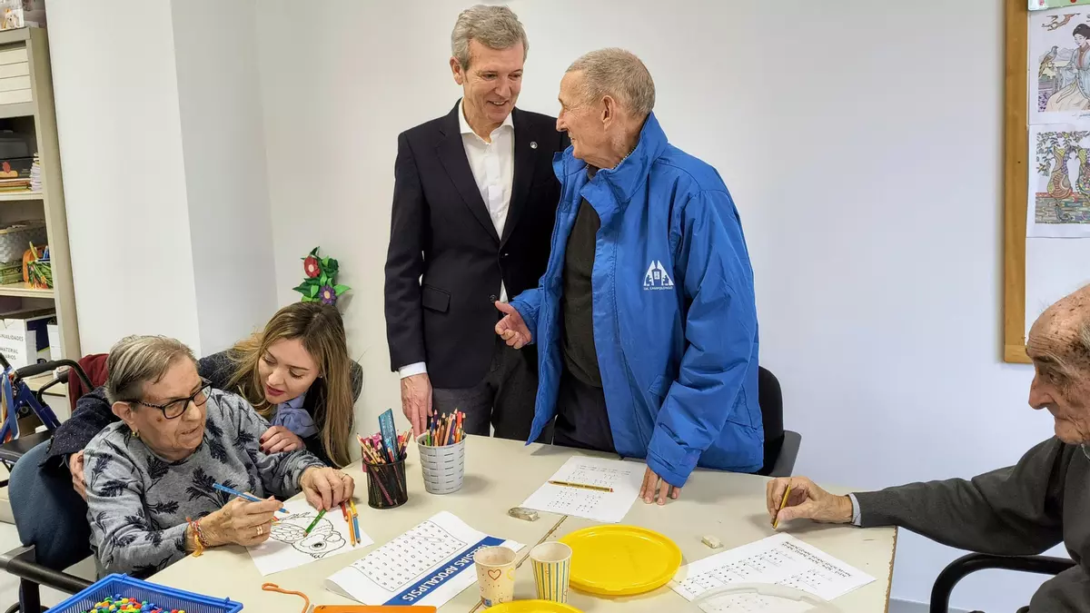 El presidente de la Xunta, Alfonso Rueda, y la conselleira de Política Social, Fabiola García, visitaron ayer estas instalaciones en cuyas salas algunos usuarios les saludaron emocionados, como Teresa Abilleira, que acaba de celebrar su 100 cumpleaños y fue la primera directora de una guardería en Pontevedra. Otro de los residentes mostró cómo se gana a un simulador, uno de los dispositivos que usan en Fisioterapia.