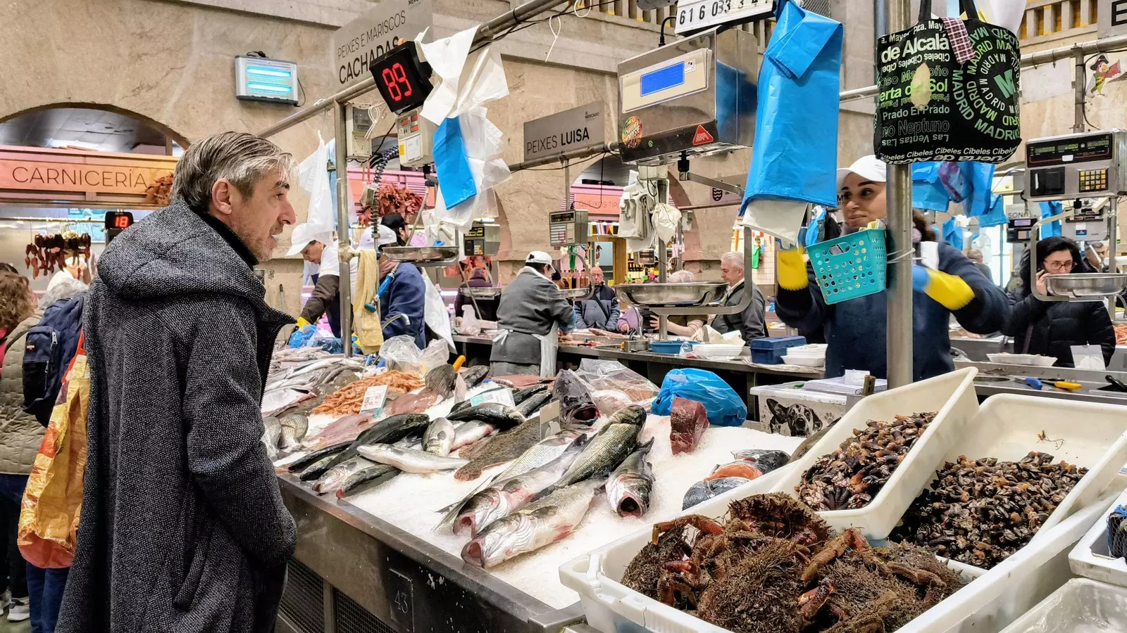 Las ventas de pescado y marisco en el Mercado de Abastos de Pontevedra están siendo menores con respecto al pasado año por estas fechas. Así lo aseguran una decena de placeros consultados que comercializan sobre todo, centolla, nécoras, almejas, cigalas, buey, bogavante y camarones.
