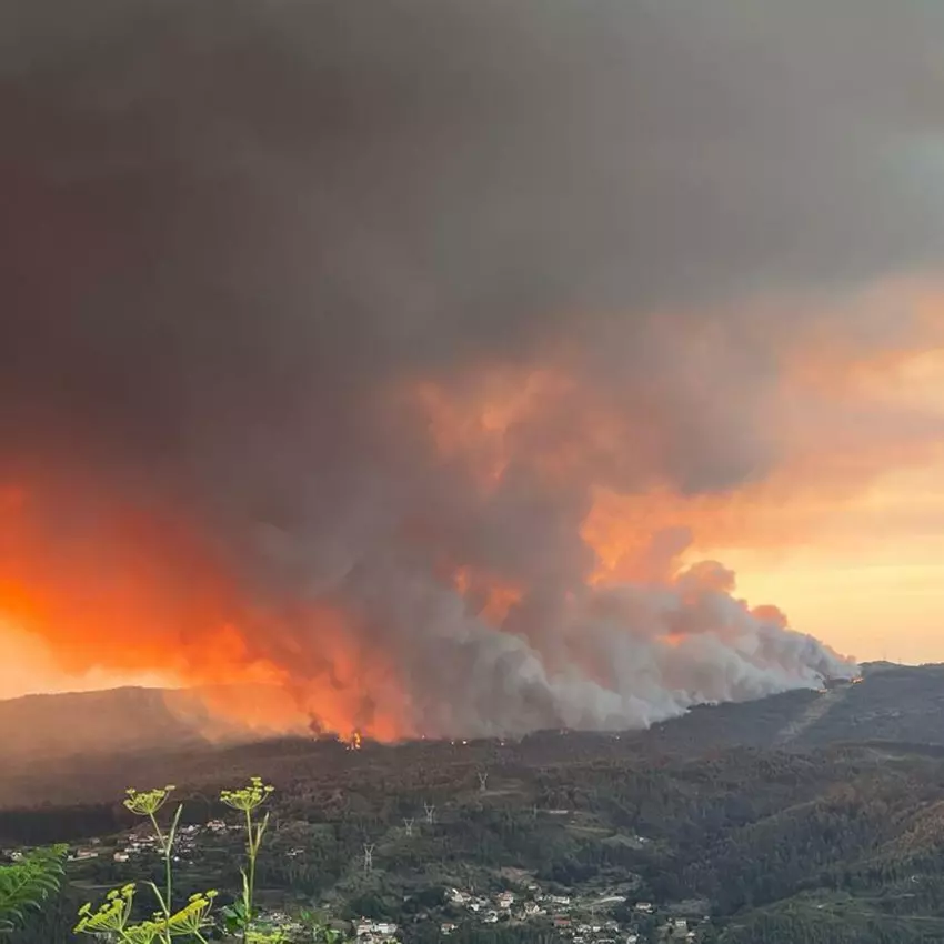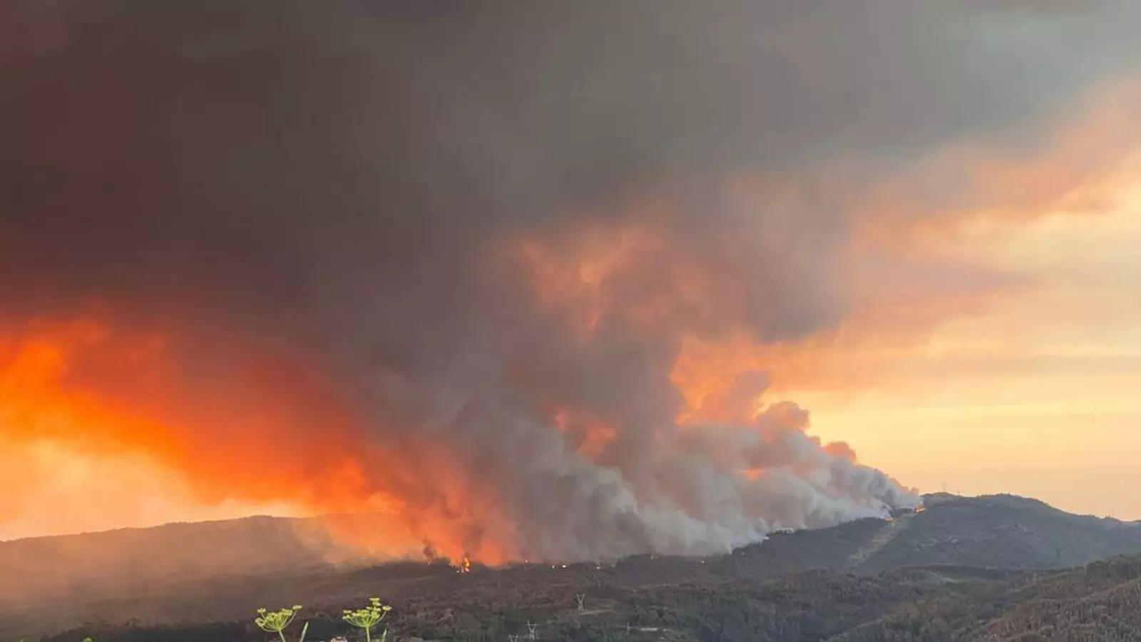 GALERÍA | El incendio en Arcade llena de humo la ría de Vigo