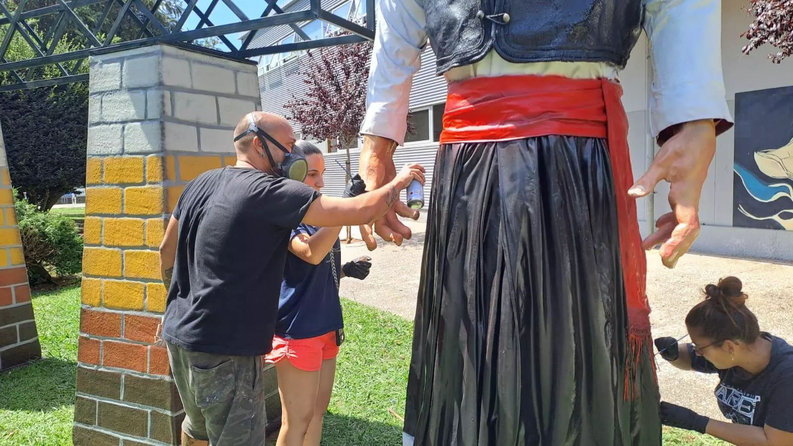 En este 2025, tras cuatro años a la intemperie, el Concello encargó su restauración “para que vuelva a lucir en todo su esplendor y dure muchos años más”, explicó Pérez Táboas. Rubén Casal, junto con Carmen Filgueira y Olalla Domínguez, fueron los responsables de su recuperación. Comenzaron la restauración a principios de mes con la limpieza y retirada de la pintura en mal estado de los gigantes. La restauración incluyó la reparación de pequeños desperfectos, la aplicación de impermeabilizantes para mayor durabilidad, la restauración de tejidos y el repintado completo de los gigantes. También se reforzó la estructura “para que sea más robusta y duradera”.