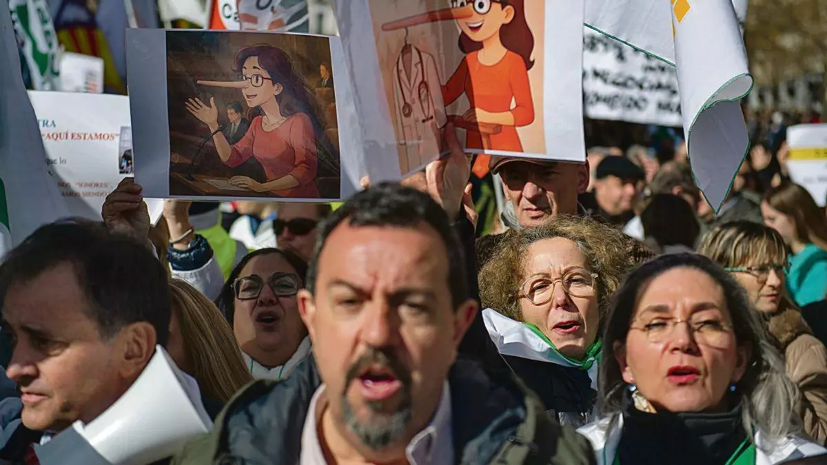 Unos 5.000 médicos y facultativos se manifestaron este sábado en Madrid contra el acuerdo del Estatuto Marco pactado entre el Ministerio de Sanidad y varios sindicatos. Los profesionales exigieron un texto propio que reconozca sus singularidades y pidieron la dimisión de la ministra Mónica García. Durante la protesta se escucharon consignas como “Mónica García, dimisión”, “Mónica, traidora” o “Sin médicos no hay Sanidad”.