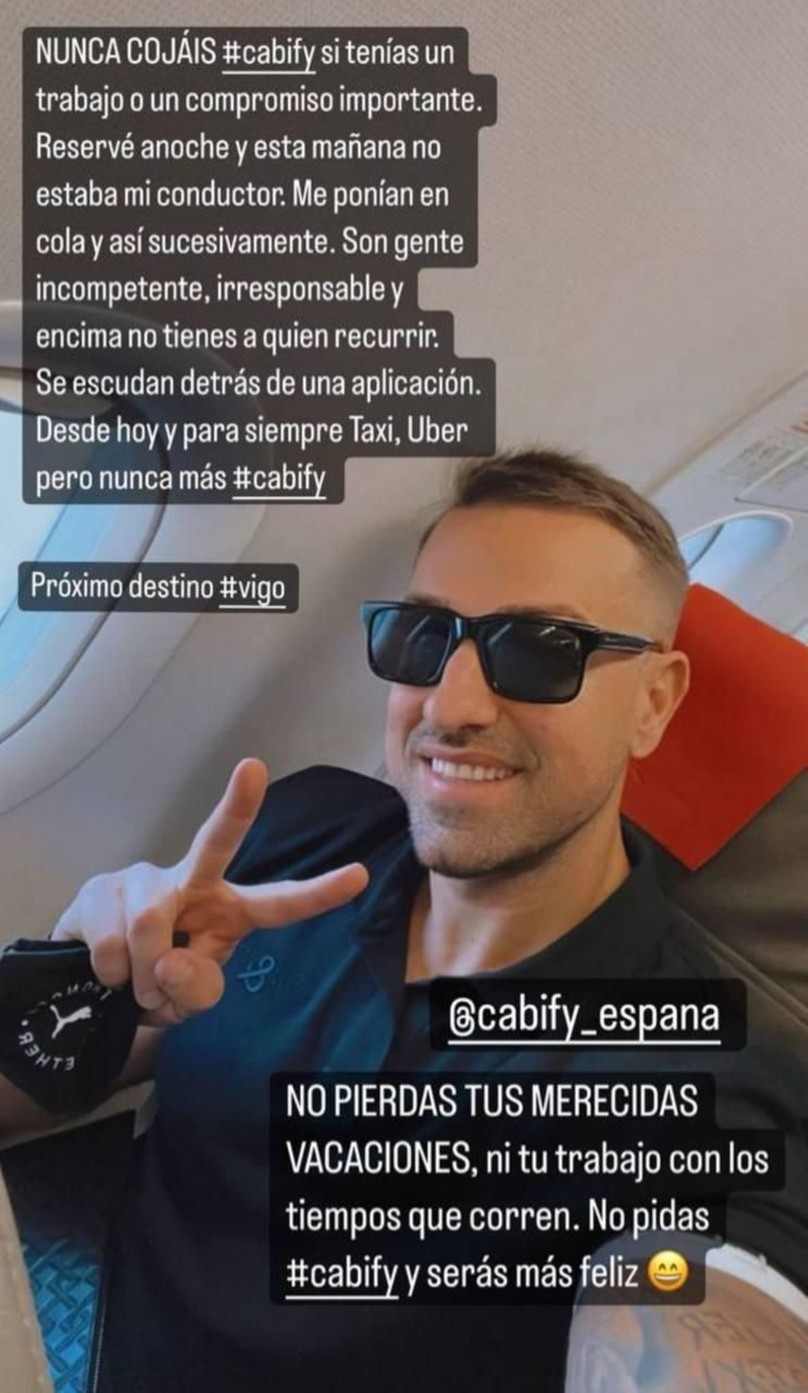 El Valenciano Rafa Mora, conocido por su polémica participación en el popular programa 'Mujeres y Hombres y Viceversa' en Mediaset, se ha dejado ver en en las calles de Vigo. Es una noticia que ha desvelado a través de sus redes sociales tras plantear una queja contra la compañía de Cabify, tal y como se puede ver en la siguiente captura. Ha pillado a todos sus seguidores por sorpresa. ¿Visitará alguna discoteca?