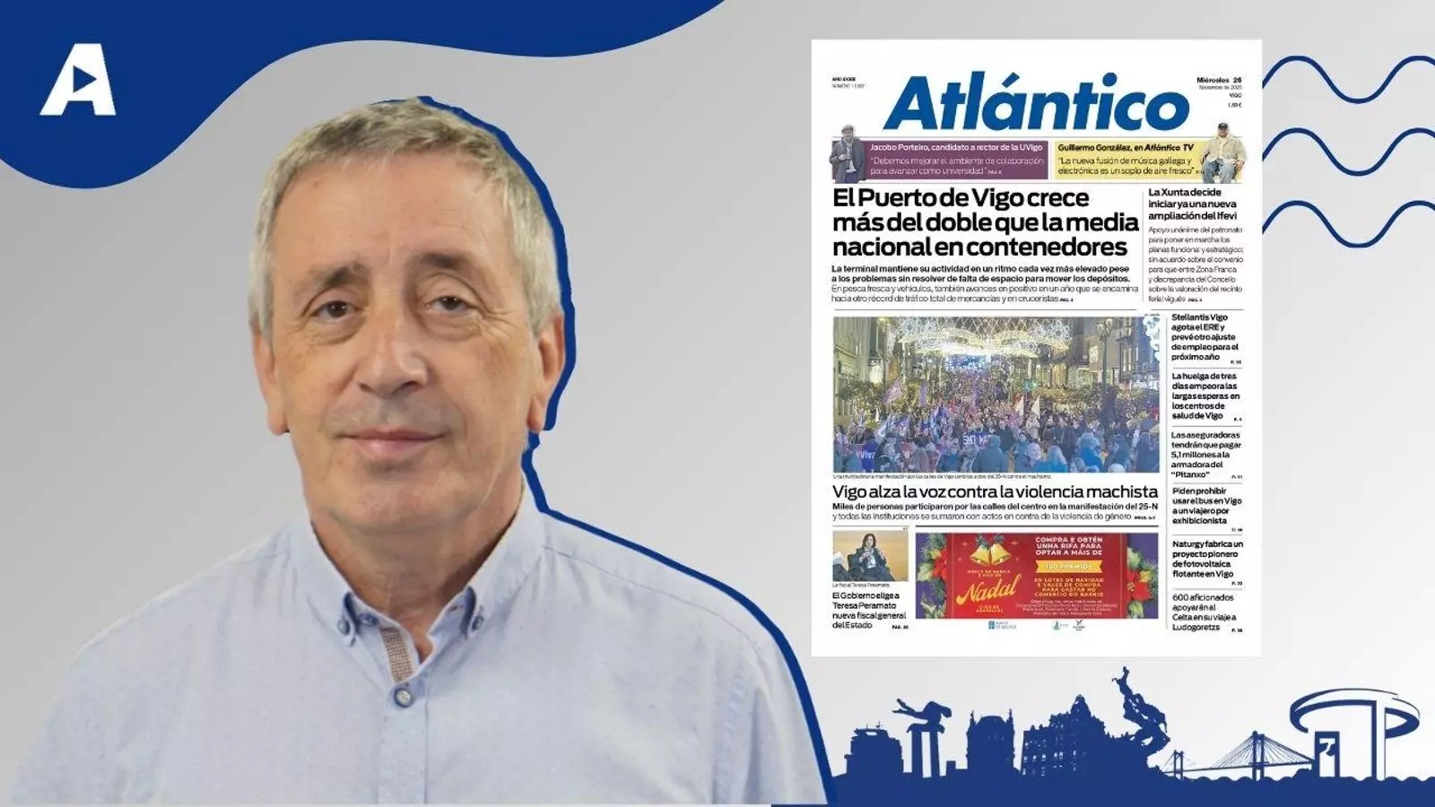 El Puerto de Vigo crece más del doble que la media nacional en contenedores abre la portada de Atlántico de este miércoles día 26 de noviembre. Otra información destacada es para la Xunta decide iniciar ya una nueva ampliación del Ifevi.