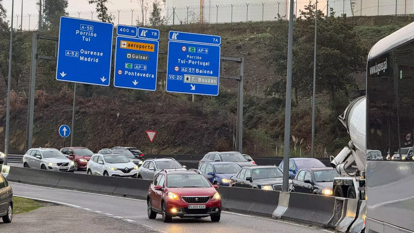 Una imagen que se repite a diario, en especial cuando hay lluvia, que complica la circulación y convierte la autovía en una auténtica trampa por sus curvas pronunciadas y las rampas con un desnivel insólito en vías de alta capacidad. La A-55 registra en esta época del año sus máximos, con cerca de 60.000 vehículos a diario desde la conexión de la A-52 de Porriño hasta el alto de Puxeiros. La autopista AP-9 vecina apenas recibe un diez por ciento del total de coches y camiones, entre 5.000 y 9.000, en función del tramo, según los datos que maneja Audasa.