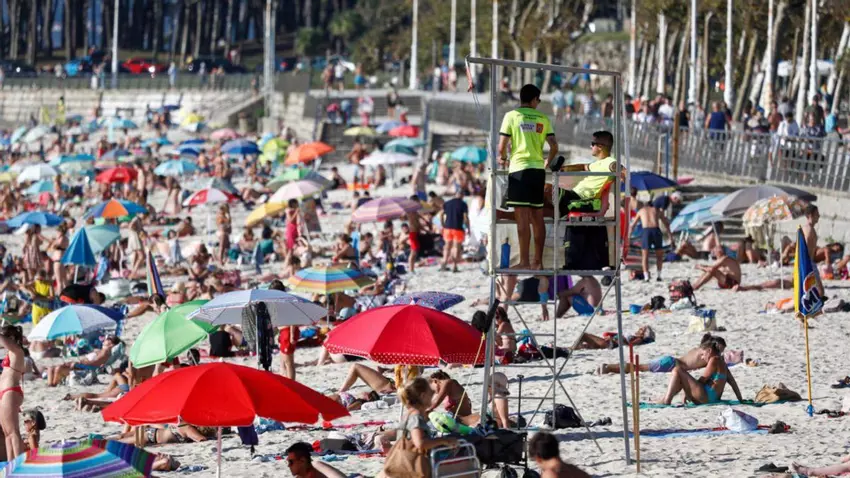 El buen tiempo permitió otro lleno en Samil, todavía con los socorristas y servicios de emergencia y auxilio activos, aunque hoy será el último día al finalizar el período que se abrió a mediados de junio. El verano también dice adiós porque la agencia meteorológica gallega contempla a partir de hoy una caída en picado de las máximas y la llegada de lluvias intensas desde el fin de semana, coincidiendo con el comienzo de la temporada baja en Cíes, otro de los marcadores del inicio oficioso del otoño. La temperatura más alta en Vigo este año se dio en agosto, con 37,7 grados durante la ola de calor, que en Galicia fue mucho más corta que en el resto de España. Un verano ligeramente cálido, aunque dentro de la normalidad, con lluvias abundantes que han permitido mantener los embalses a plena ocupación, salvo la pequeña presa de Baiona, que se encuentra al 40 por ciento.