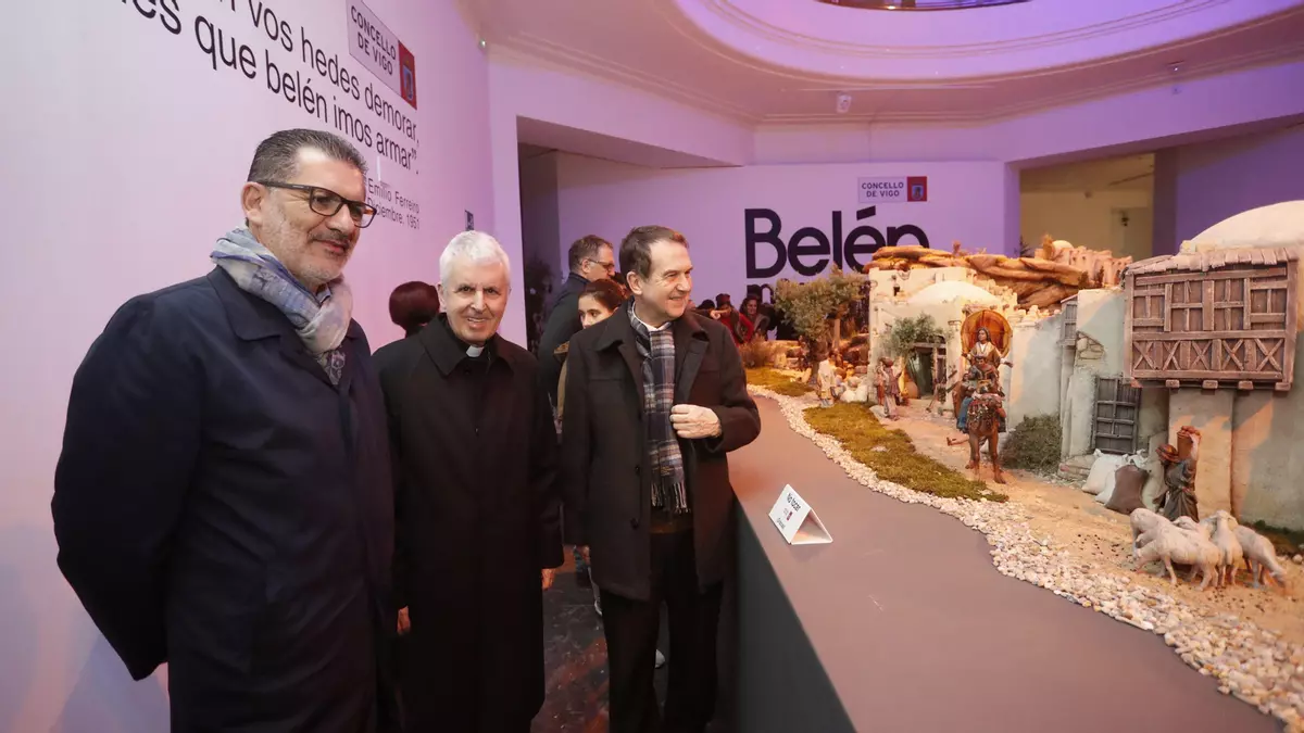 El alcalde Abel Caballero acompañó al obispo Luis Quinteiro en una visita al belén monumental que se puede visitar en la Casa das Artes. Estuvo también en la visita el concejal Ángel Rivas.