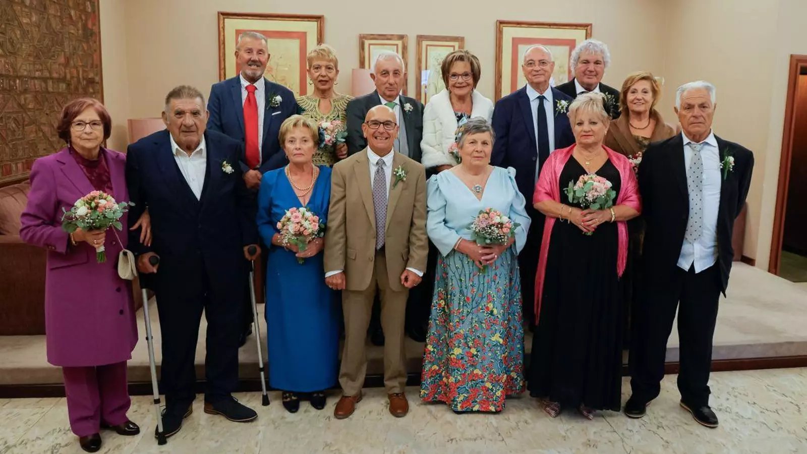 Los que también se conocieron en el baile, en Ramallosa, fueron Elisa y Cándido que ven en el “respeto, tolerancia y comprensión” la receta para llevar tantos años juntos. Este domingo lo compartieron con sus allegados y la gran familia que forman en la asociación. La organización les agasajó con un ramo de flores para las novias y prendidos para los novios, que disfrutaron de un concierto posterior a la misa y una comida en el Hotel Coia, que se prolongó hasta última hora de la tarde y que contó con la presencia del alcalde Abel Caballero, que tuvo un detalle con los protagonistas.