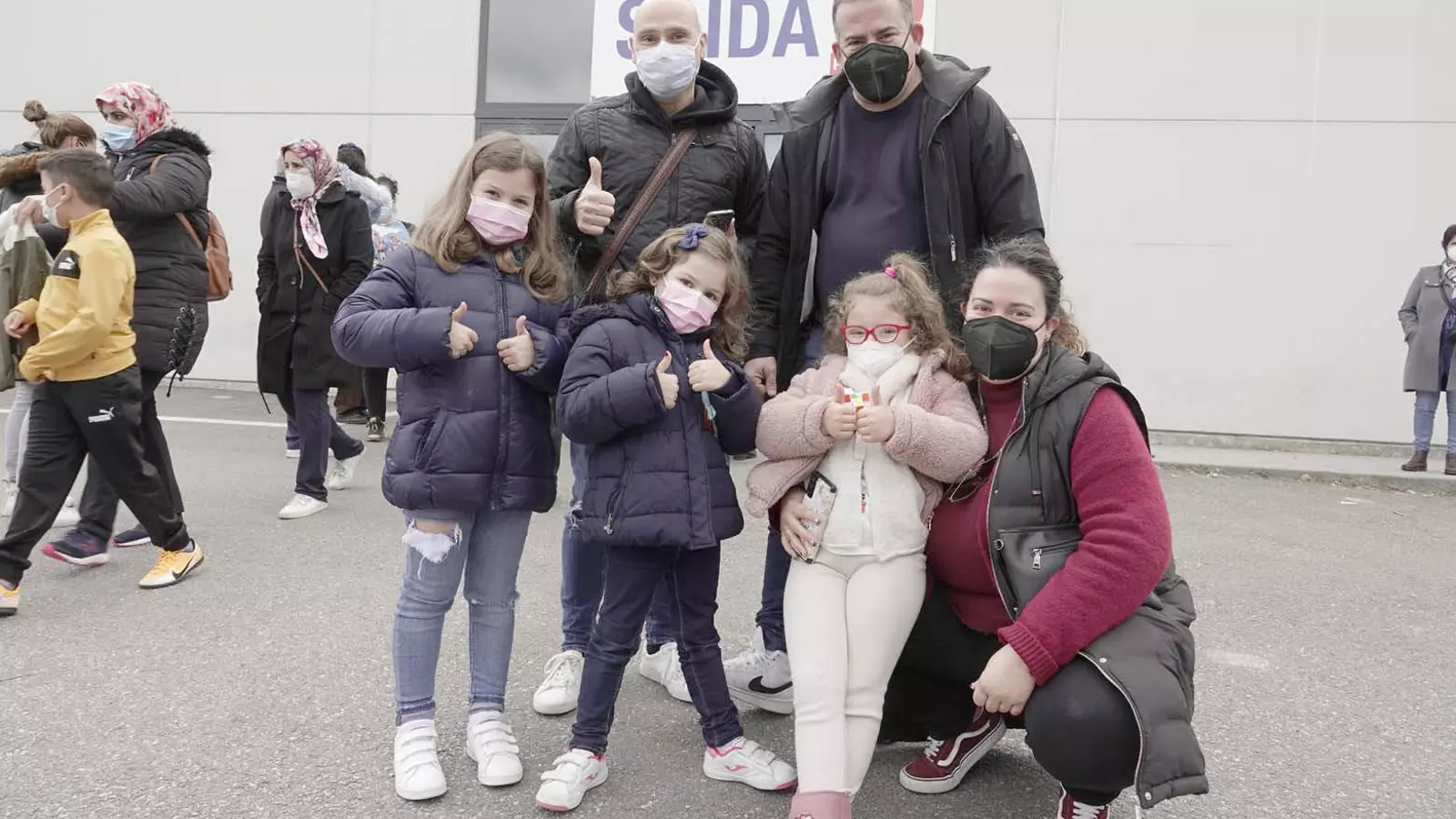 En la puerta de salida, sonrisas y alguna que otra lágrima tras recibir el pinchazo, pero sobre todo, mucha alegría y tranquilidad por haber iniciado este proceso por el que han tenido que esperar un año. Todo ello en una fría mañana en la que los puestos ambulantes de venta de comida que estacionan en las inmediaciones aprovechando la gran afluencia a la vacunación fueron los mayores aliados de las familias gracias a las bebidas calientes.