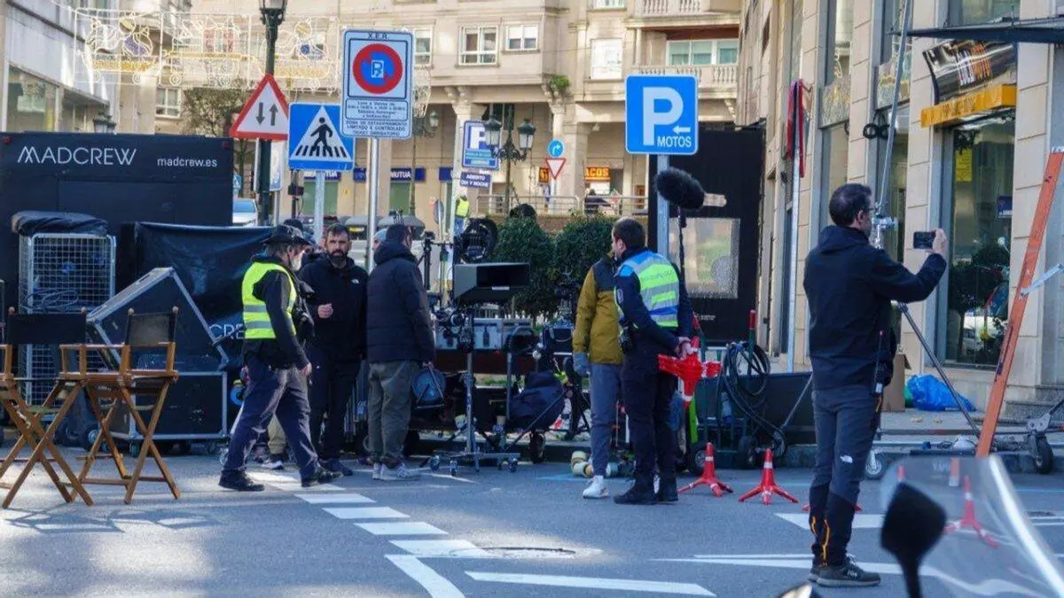 El rodaje se prolongará hasta mañana en las calles del centro de Vigo. La Mutua Madrileña podría estar detrás