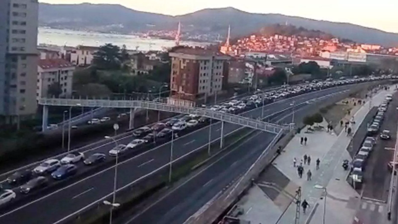 Colapsados todos los accesos a la ciudad: más de 3 kilómetros de cola para entrar por la AP-9 y bloqueo total del centro