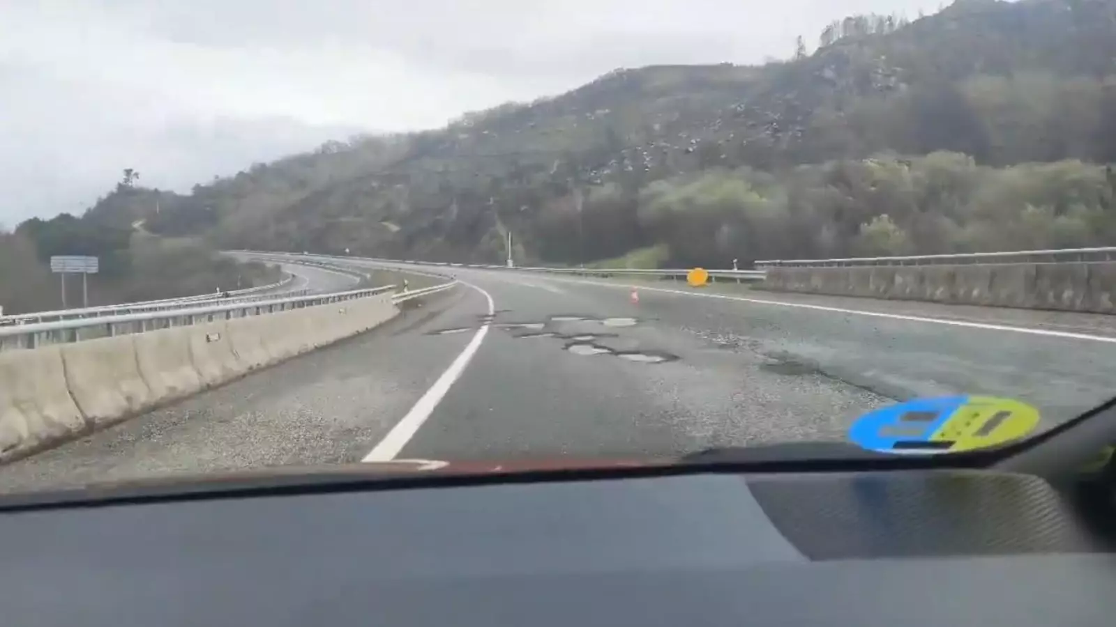 Los baches y daños de la A-52, autovía que conecta Vigo y Madrid, dificultan la conducción